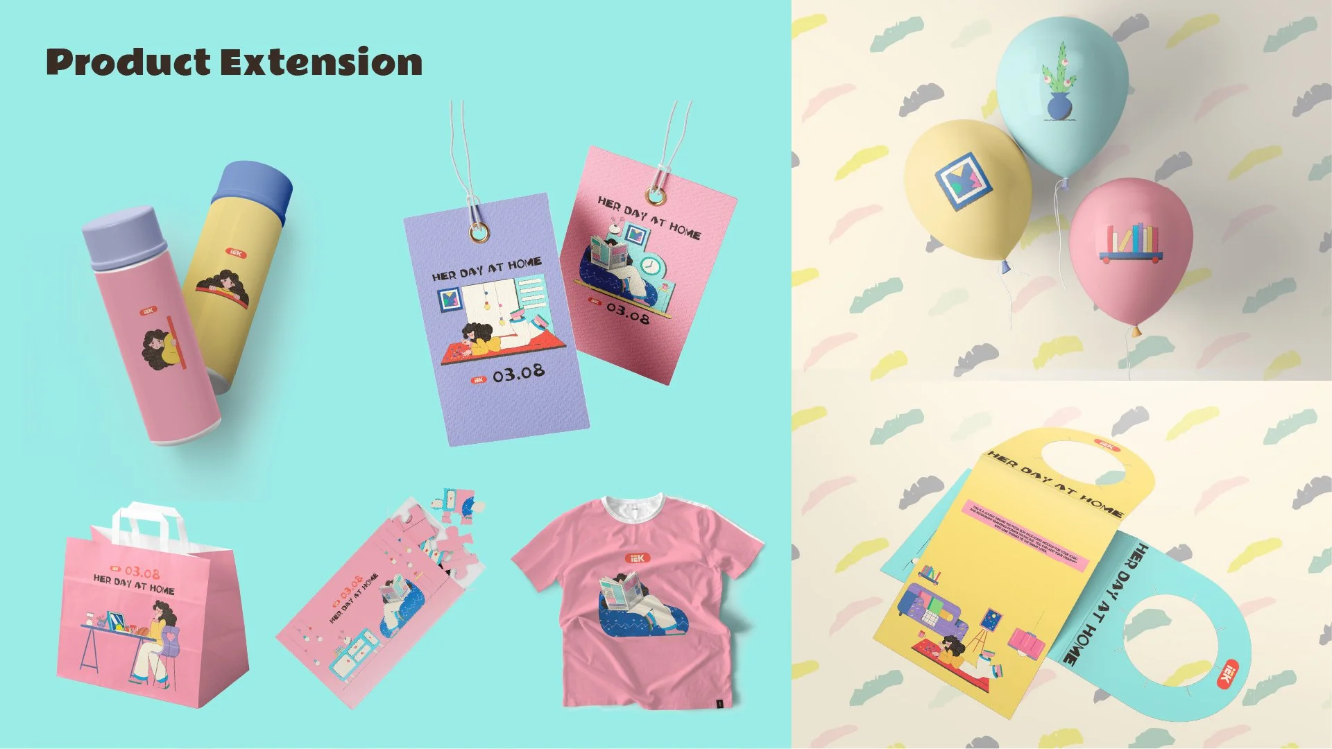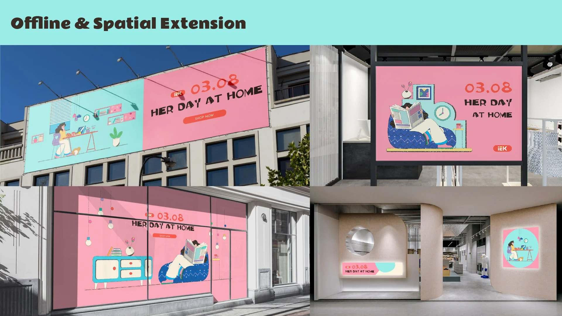 Centered on “Her Day at Home,” it features three narrative illustrations extended across digital and physical touchpoints, forming a cohesive campaign system